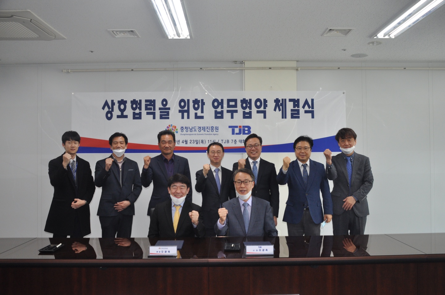 대전 TJB 사옥 사장실에서 열린 협약식에는 TJB 이광축 사장과 이재곤 보도국장, 김상기 기획미디어사업국장, 김세범 미디어전략팀장 등이 참석했고, 경제진흥원에서는 오광옥 원장, 이병희 부원장, 조광옥 해외마케팅 파트장, 이원부 기획팀 계장이 각각 참석했다.