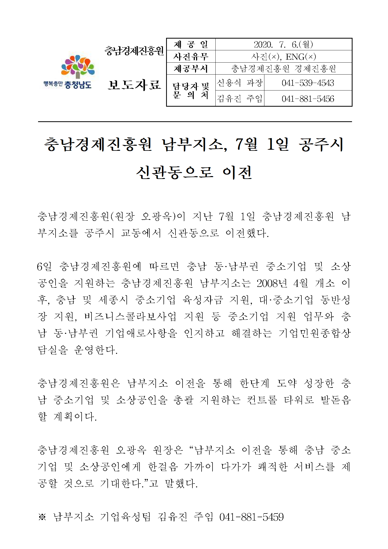 | 충남경제진흥원 남부지소, 공주 신관동으로 이전 [2020.07.06.] | |||