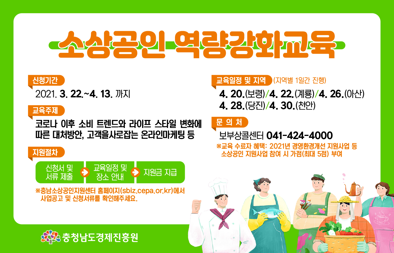 | 충남경제진흥원, 2021년 소상공인 역량 강화 교육 실시 | |||