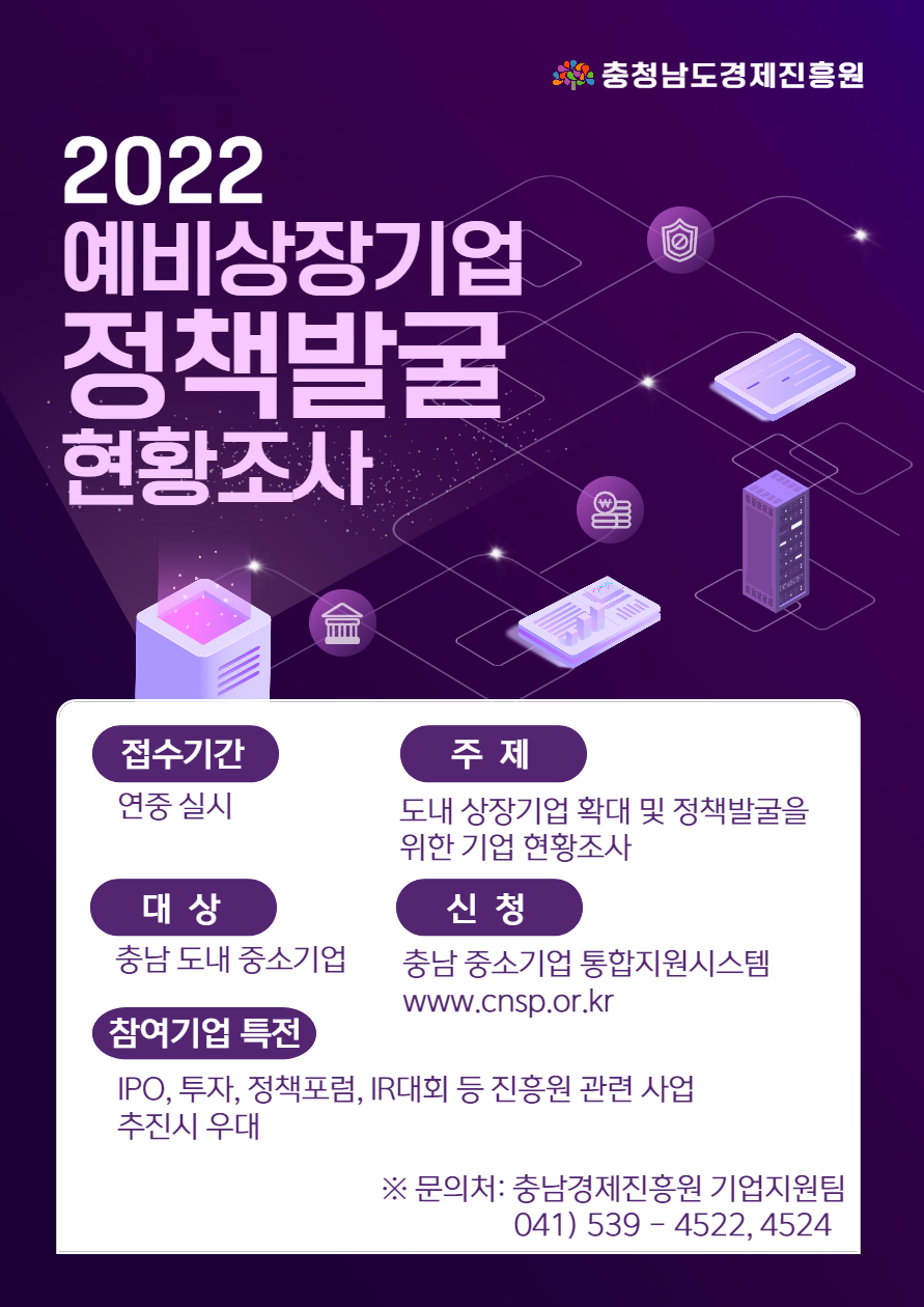 | 충남경제진흥원, 예비 상장기업 현황 조사 진행중 | |||