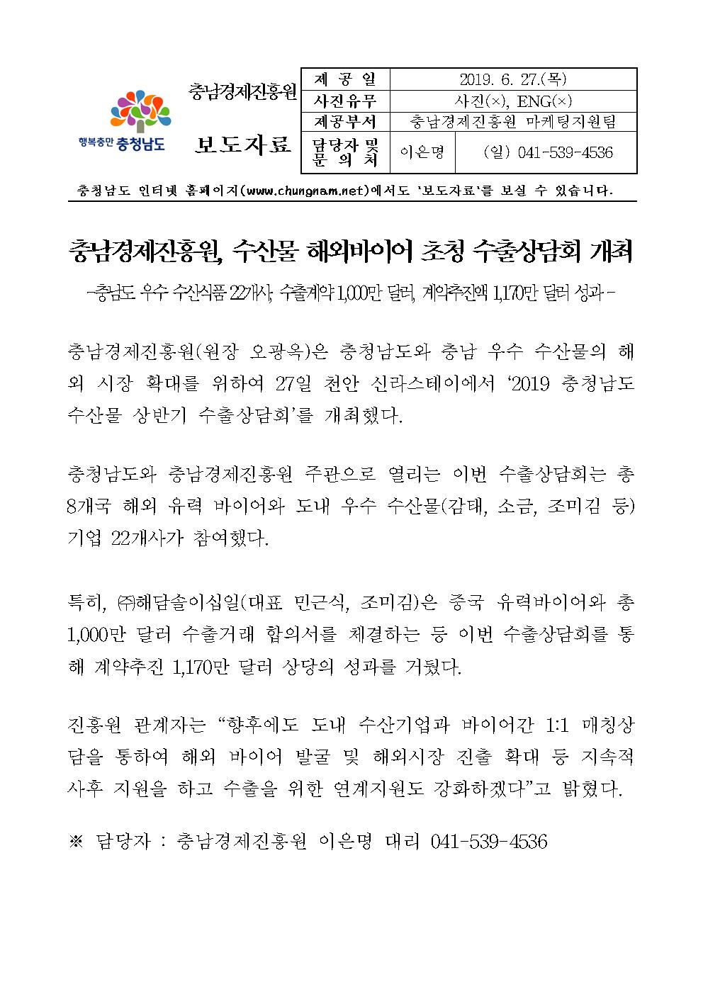 | 2019 충청남도 상반기 수산식품 수출상담회 개최 [2019.06.27] | |||