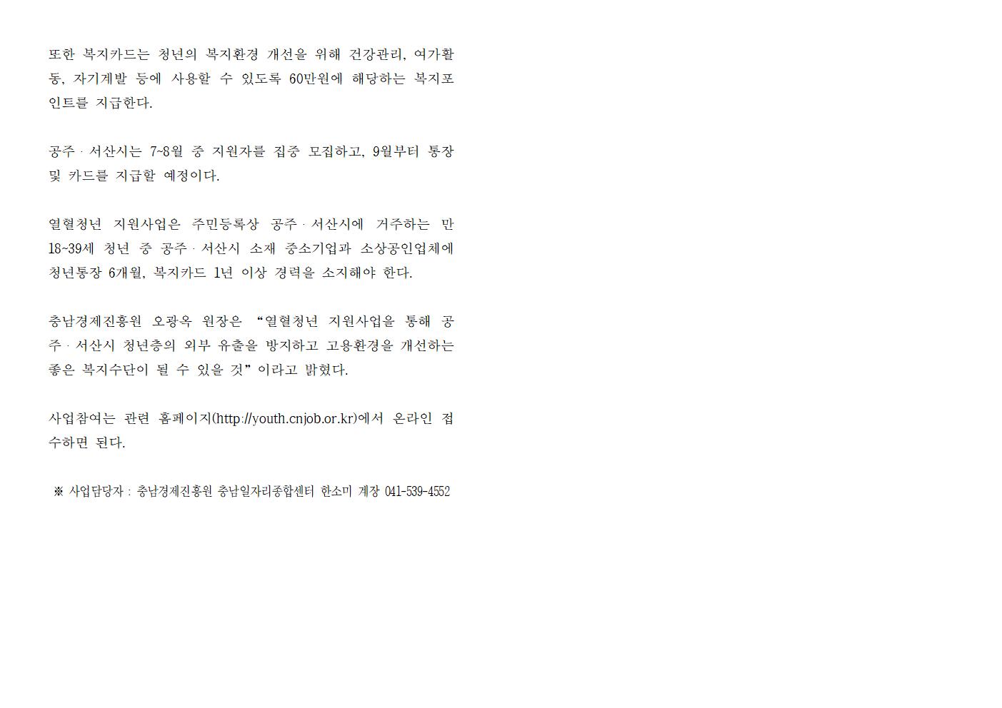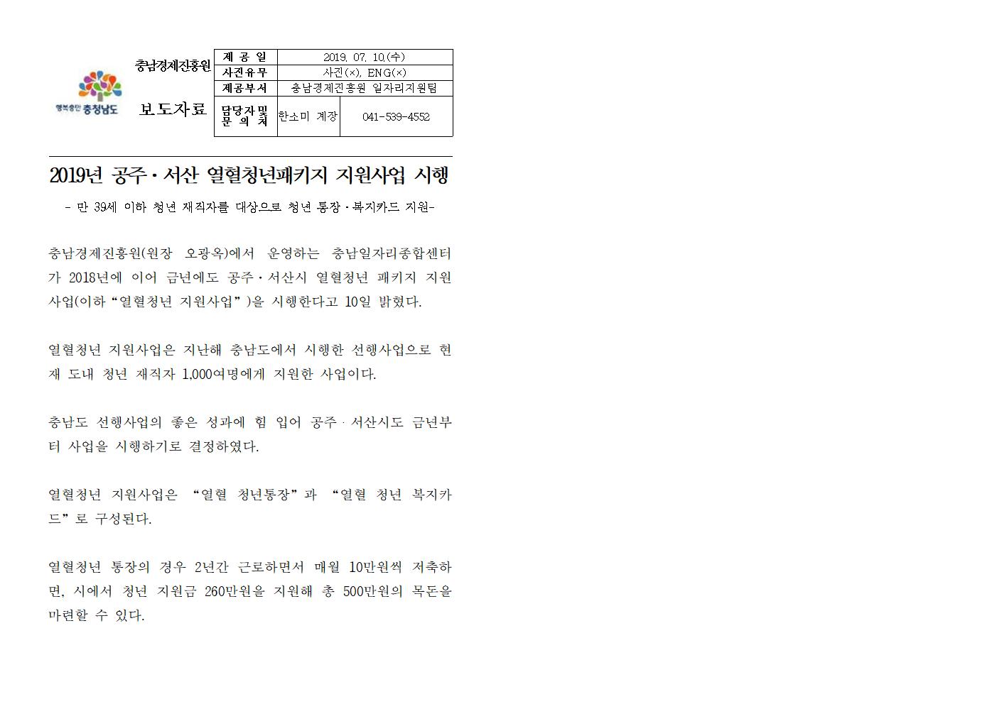 | 2019년 공주,서산 열혈청년패키지 지원사업 시행 [2019.07.10] | |||