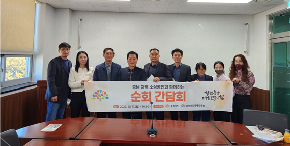 | 부제목 | 청양군, 금산군 등 서·남부지역 ‘2022 찾아가는 소상공인 순회 간담회’ 진행 | 제공일자 | 2022-11-09 |