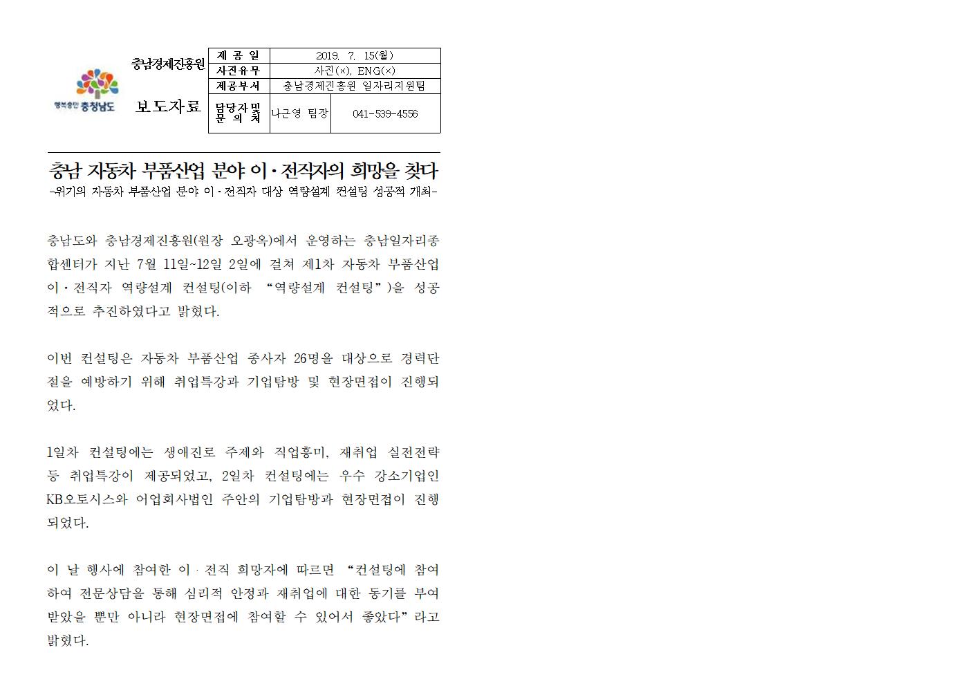 | 충남 자동차 부품산업 이전직자의 희망을 찾다 [2019.07.15] | |||