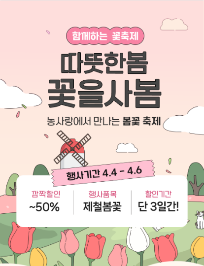 충남경제진흥원은 충남 농사랑(nongsarang.co.kr)에서 4월 4일부터 6일까지 봄꽃 기획전‘따뜻한봄, 꽃을사봄’을 개최한다고 밝혔다.