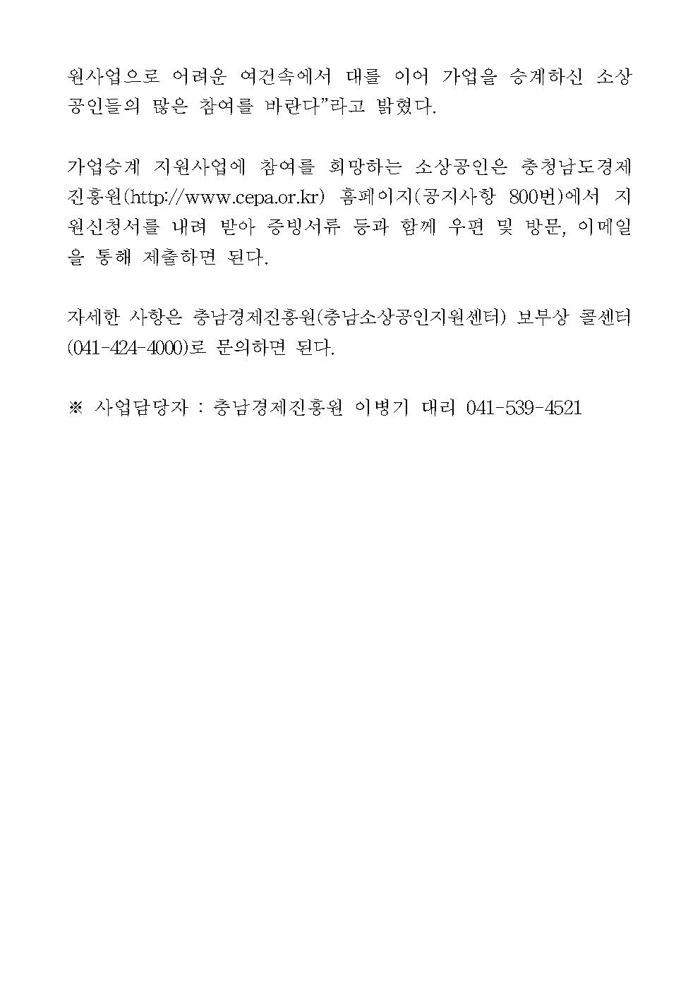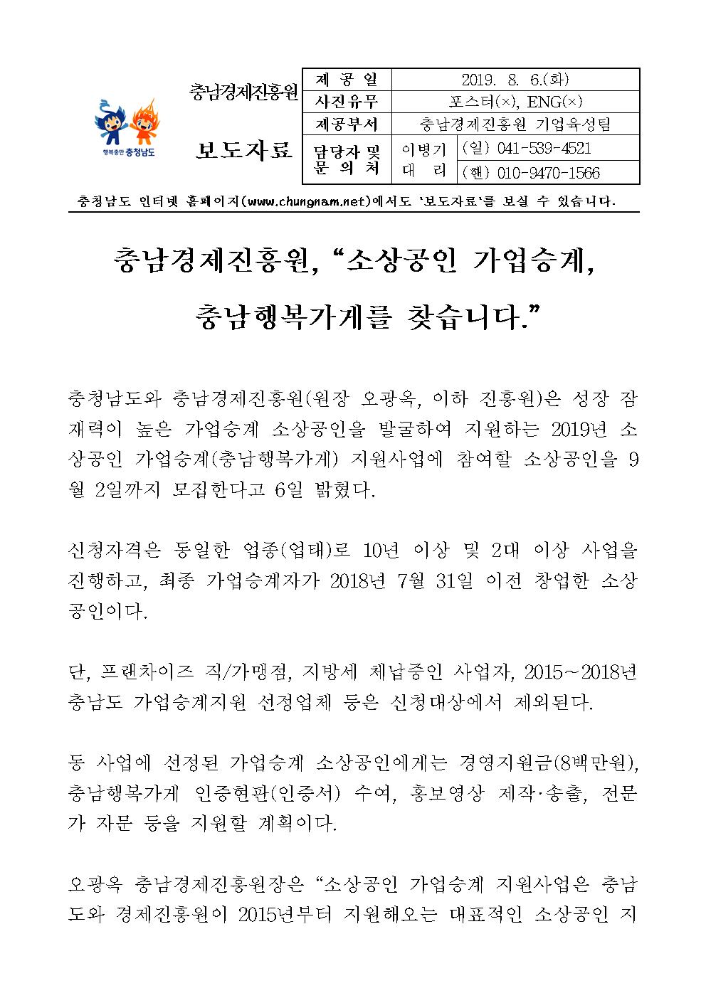 | 충남경제진흥원, 가업승계를 통한 충남행복가게를 찾습니다 [2019.08.06] | |||