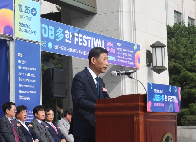 충청남도와 (재)충청남도일자리경제진흥원은 10.25.(수) 13~16시 아산 선문대학교에서 지역 경제 활성화와 일자리 창출을 위해 개최한 「'2023년 충남 잡다(Job多)한 페스티벌’」에서 70개 기업과 2천여 명의 구직자들이 참여하는 등 성황리에 진행됐다고 밝혔다. 이번 박람회에서는 10.19.(목)부터 박람회 홈페이지를 통해 참여기업과 세부 프로그램을 안내하고 사전등록을 접수하기 시작했으며, 도내 7개 대학 및 특성화고에서 버스를 통해 단체로 참여한 학생들의 모습도 확인할 수 있었다. 채용면접존에서는 제조, 서비스, IT 등의 다양한 분야에서 활동 중인 도내 우수기업들이 참여하여 다채로운 경력과 기술을 소개하며 풍부한 채용 기회를 제공 구직자들의 호기심을 자아내며 박람회 분위기를 더욱 활기차게 만들었다. 컨설팅존에서는 기업과 구직자의 만남이 실제 채용으로 이어지는 성공률을 높이기 위해 면접 스피치, 모의면접, 이미지 메이킹, 입사 서류 컨설팅 등 다채로운 지원 프로그램도 진행되었다. 또한, 현직자와 구직자 간 소그룹 형태로 진행되는 직무설명관에서는 한국서부발전㈜, NH농협은행, 스테코㈜, 엠이엠씨코리아㈜, ㈜이티에스가 참여하여 채용계획과 기업의 인재상을 안내하였다. 그간 접하기 어려웠던 채용정보를 생생하게 전달하여, 현장에 있는 청년 구직자들의 관심을 집중시켰다.