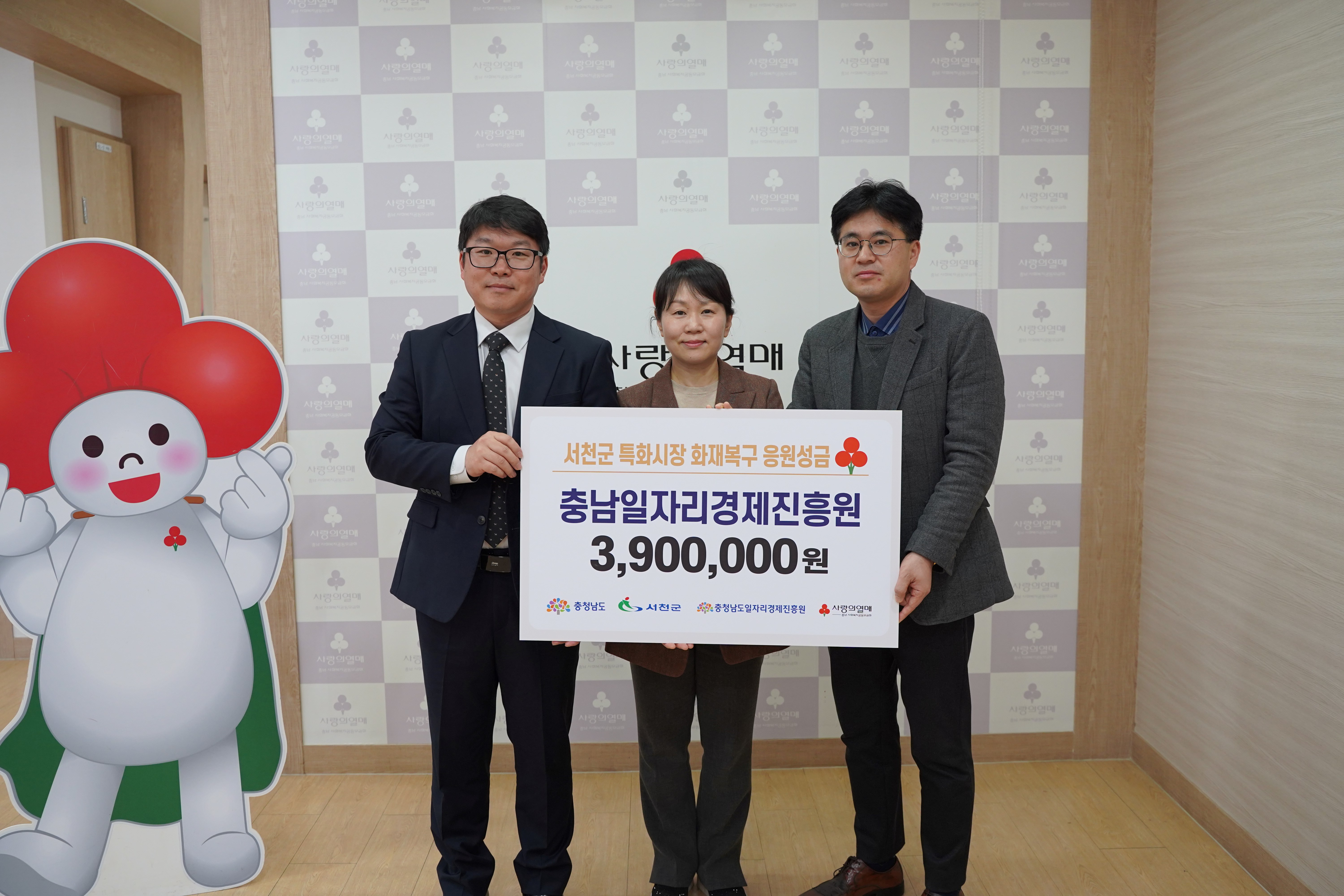 | 충남일자리경제진흥원 임직원, 서천특화시장 화재 피해복구 기부금 전달 | |||