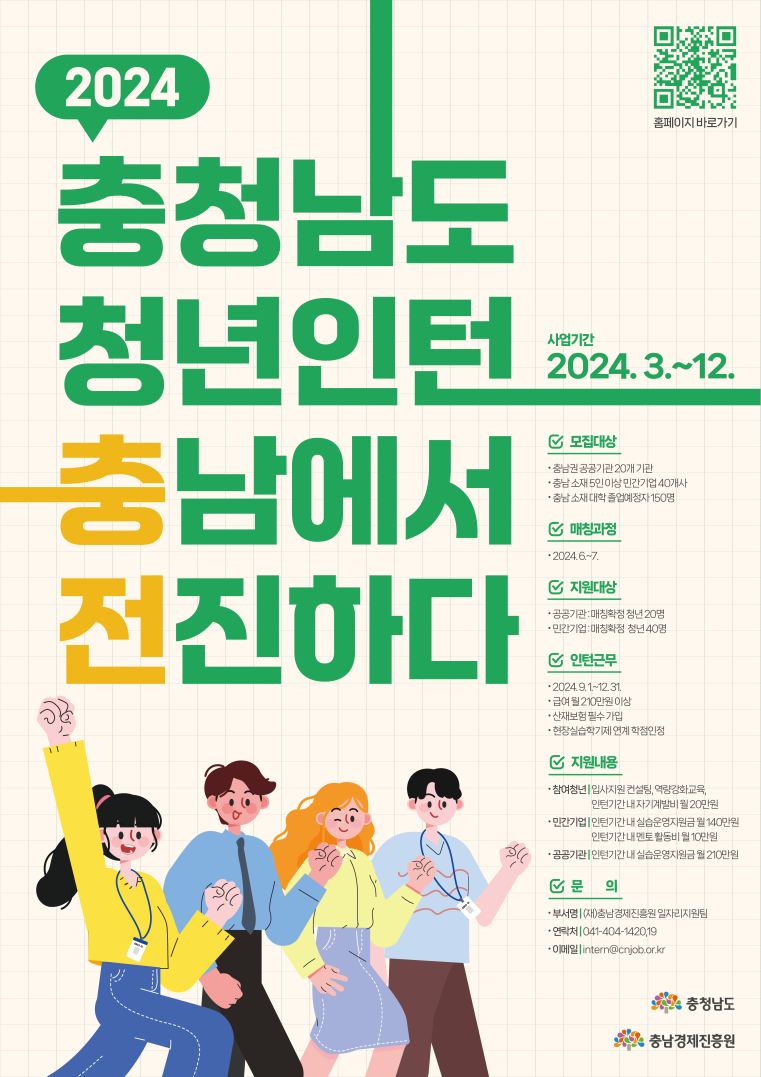충청남도·(재)충남경제진흥원 청년인턴 사업 “충전” 만남의 날 개최 충청남도와 (재)충남경제진흥원은 오는 27일 나사렛대학교에서 충청남도 청년인턴 사업 "충전" 만남의 날 행사를 개최한다. 충청남도 청년인턴 사업 "충전" 만남의 날은 도내 대학과 기관 및 기업이 참여하여 인턴 매칭을 위해 마련된 행사로, 청년들에게 현장 면접을 통한 직무 경험의 기회를 제공한다. 이날 행사에는 도내 공공기관 15개관, 민간기업 55개사, 대학 졸업예정자 150여 명이 참여하여 인턴 면접을 진행할 예정이다. 이번 만남의 날을 위해, 대학 졸업예정자 150여 명은 입사지원 컨설팅을 통해 자기소개서 작성 및 면접 코칭 교육을 받는다. 만남의 날 매칭 청년 62명은 9월부터 12월까지 총 4개월간 인턴으로 근무한다. 김찬배 진흥원장은 "청년인턴 사업 충전 만남의 날을 통해 도내 청년들의 직무역량을 강화하고 지역 일자리 확보를 지원하여 안정적인 고용 환경 조성에 기여하겠다"고 말했다. |