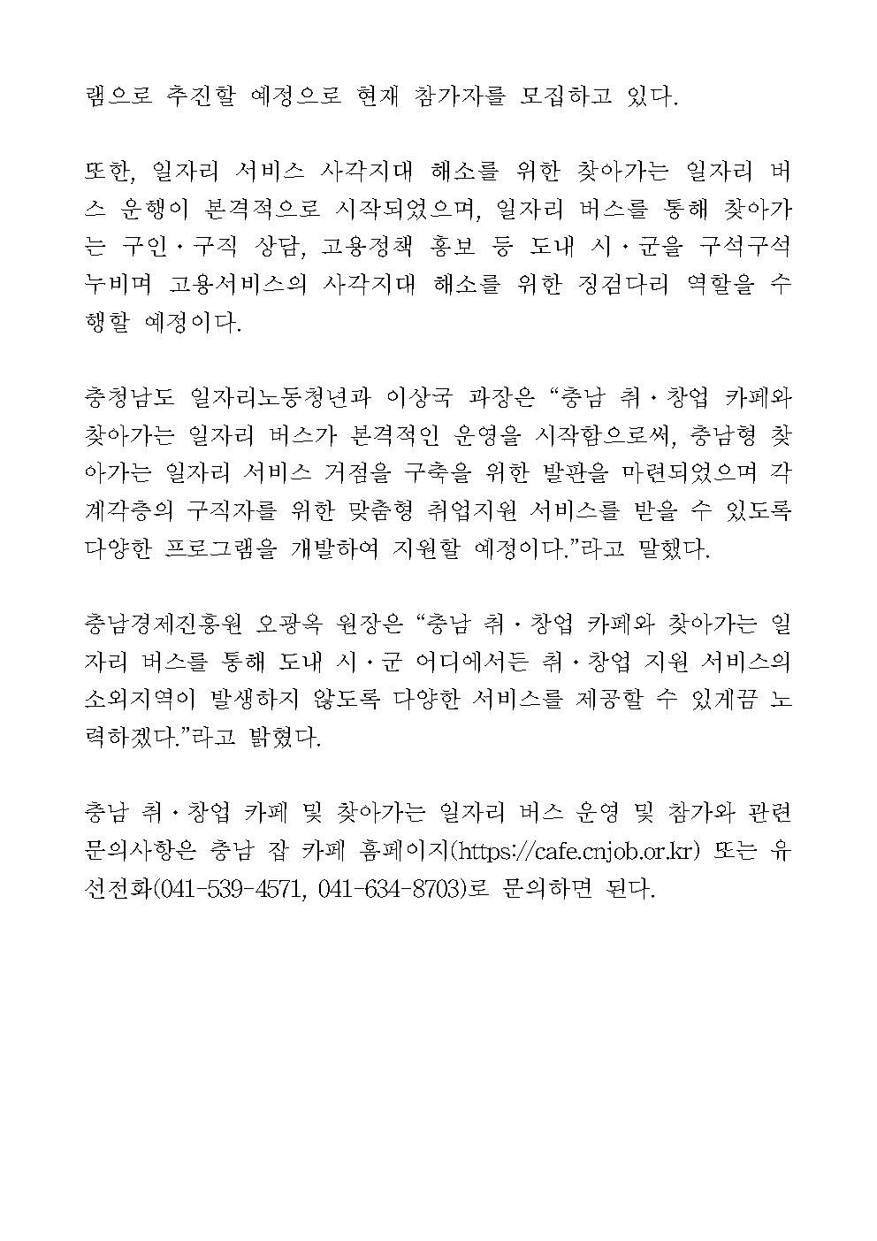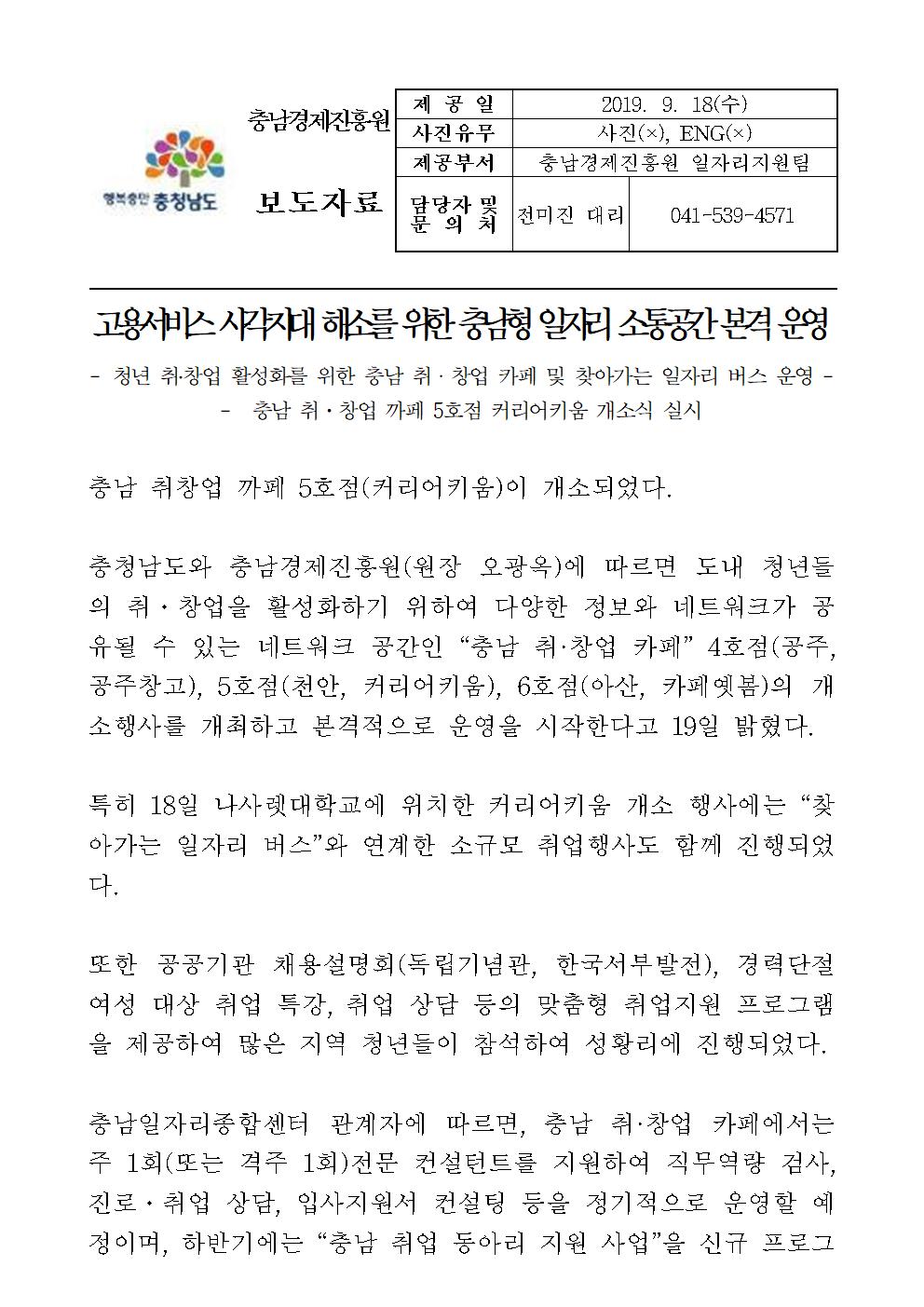 | 충남 취창업 까페 5호점 개소 고용서비스 사각지대 해소를 위한 충남형 일자리 소통공간 본격 운영 [2019.09.19] | |||