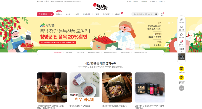 | 충남 농사랑, 청양군 농특산물 다 모여라! “전품목 20% 할인” | |||