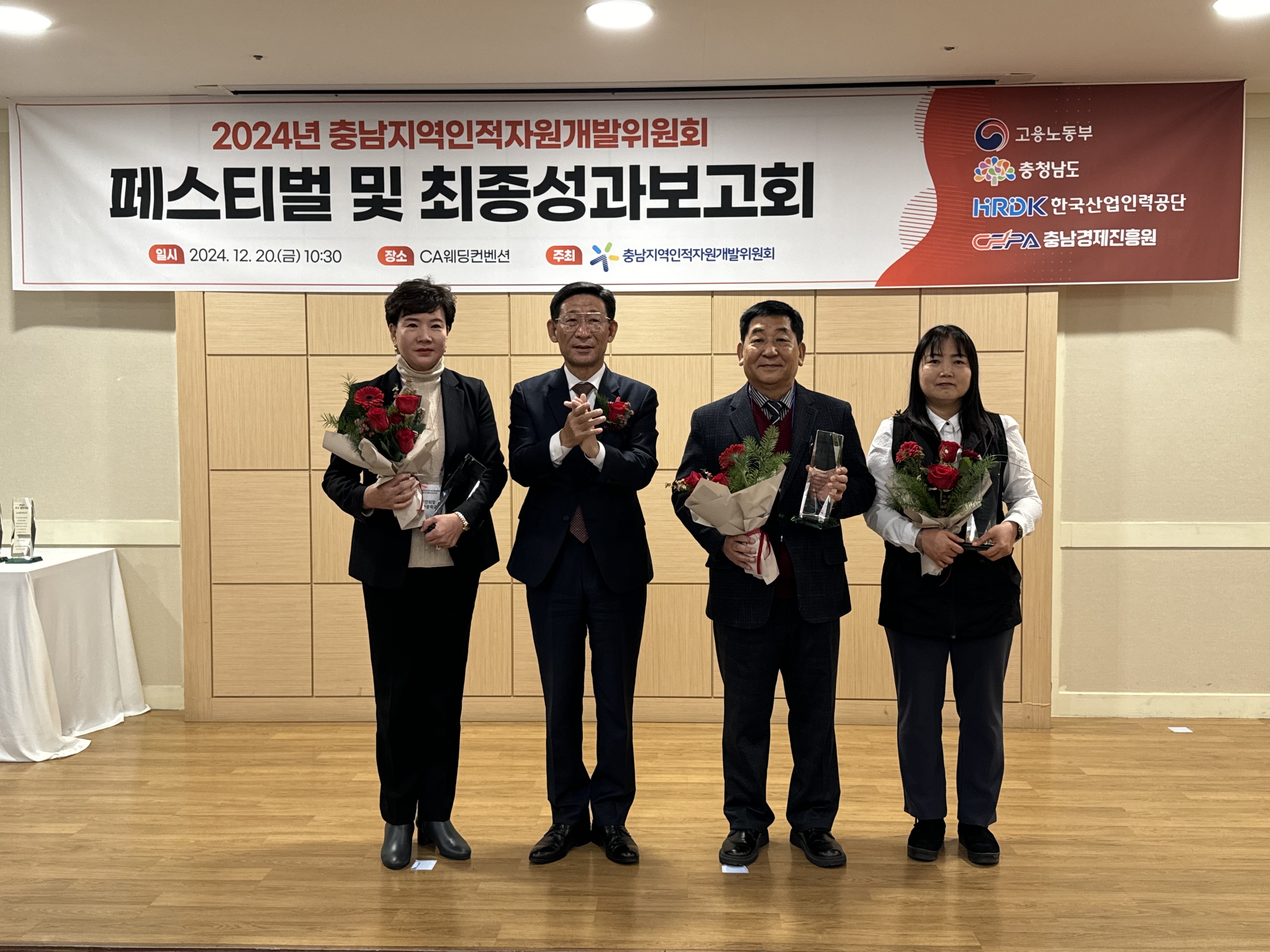 12월 20일(금) 충남지역인적자원개발위원회(설치기관 충남경제진흥원)는 CA웨딩컨벤션에서 『2024년 충남지역인적자원개발위원회 페스티벌 및 최종성과보고회』를 개최하였다. 행사는, 충남지역의 인력양성과 일자리 창출에 기여한 관계자들이 한자리에 모여, 한 해 동안의 성과를 공유하고 서로의 열정과 노력을 축하하는 뜻깊은 시간을 가졌다. 이날 행사에는 올해 인력양성과 일자리 창출에 우수한 성과를 거둔 기업, 훈련센터, 훈련기관이 표창과 상패를 수여받았으며, 이를 통해 그간의 노고를 격려하고 축하하는 자리가 마련되었다. 시상자로는 충남경제진흥원 김찬배 원장, 천안고용노동지청 이성복 과장, 한국산업인력공단 천윤수 지사장, 충남지역인적자원개발위원회 문상인 위원장(충남북부상공회의소 회장)이 참여했다. 위원장은 “충남인자위에게 올 한 해의 성과는 매우 중요한 의미를 가지며, 앞으로도 중앙정부와 지방정부와의 협력을 통해 인력양성과 일자리 창출의 중추적 역할을 수행하며, 지역 경제 성장과 산업 혁신을 선도하는 주체로 자리매김하겠다”고 다짐했다.