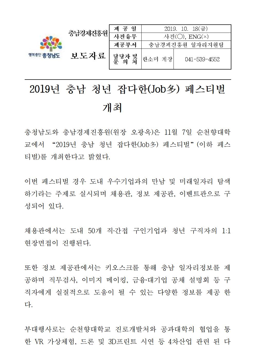 | 충남경제진흥원, 2019년 충남 청년 잡다한 페스티벌 개최 [2019.10.18] | |||