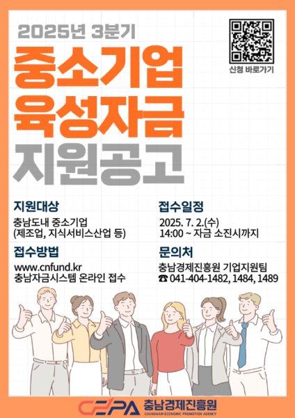 | 충남경제진흥원, 2025년 3분기 중소기업육성자금 접수 시작 | |||