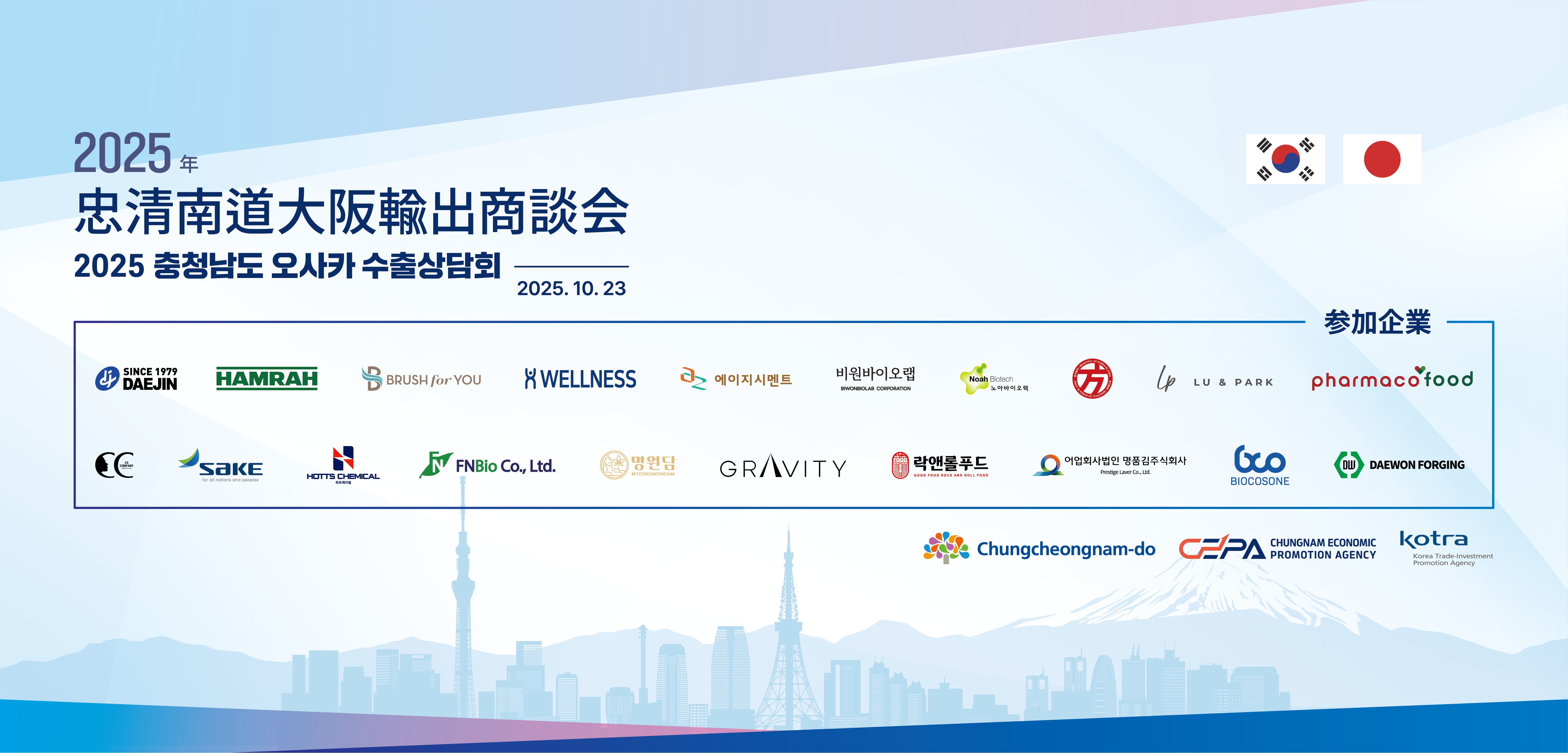 충남경제진흥원, 일본 오사카 수출상담회로 충남 기업 해외 판로 개척 나서 – 10월 23일(목), 일본 오사카에서 ‘2025 충남 오사카 수출상담회’ 개최 –