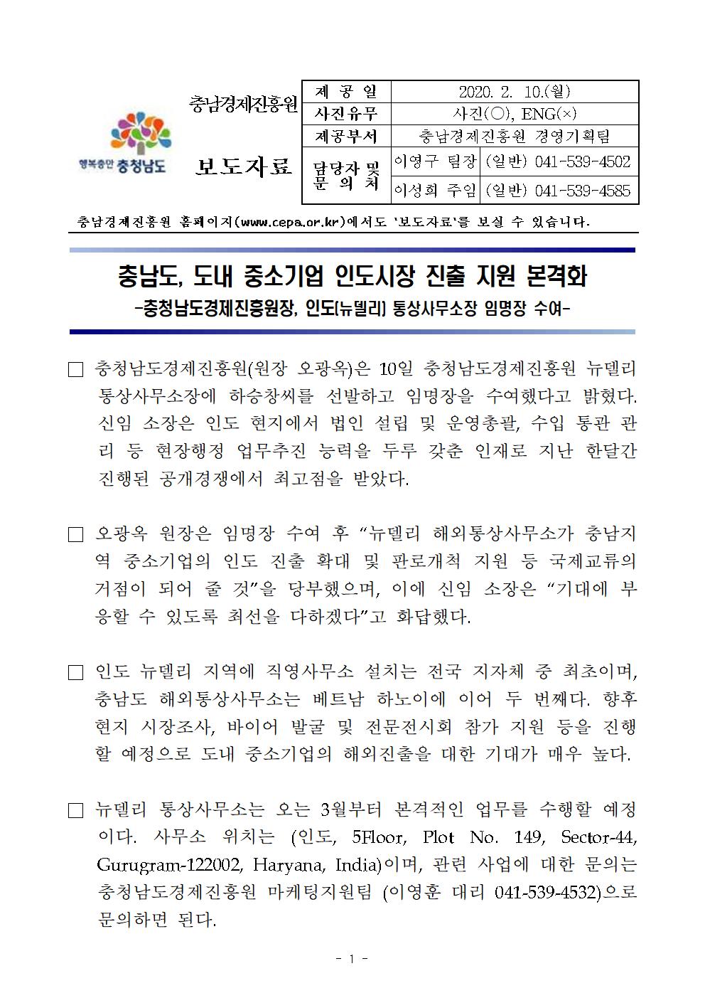 | 충남도, 도내 중소기업 인도시장 진출 지원 본격화 [2020.02.10] | |||