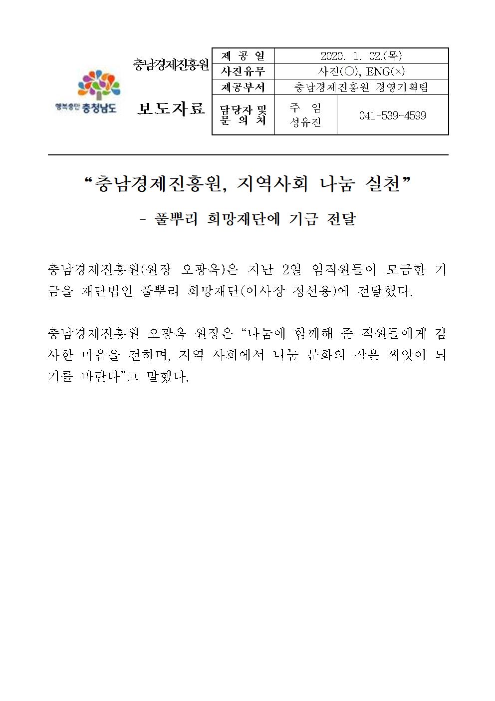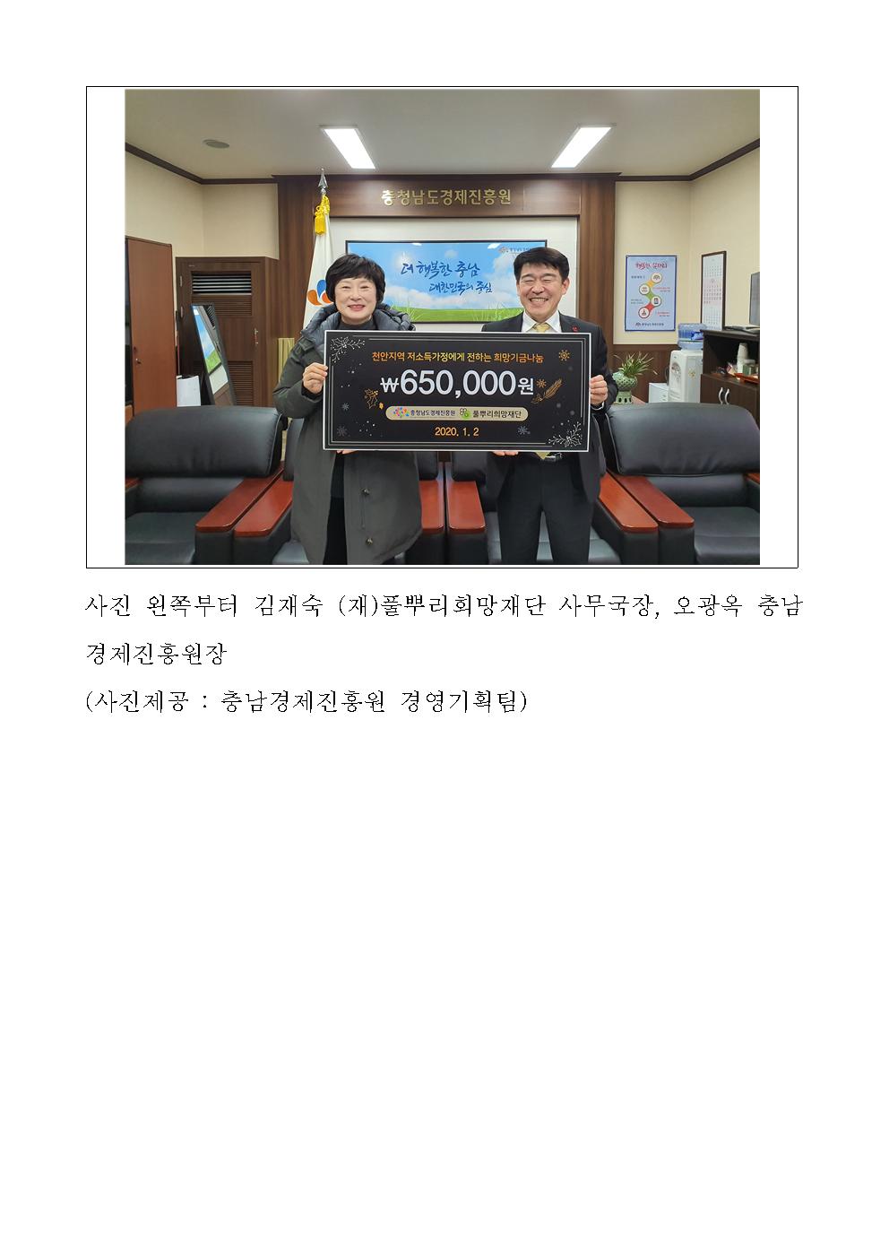 | 충남경제진흥원, 지역사회 나눔 실천 [2020.01.02] | |||