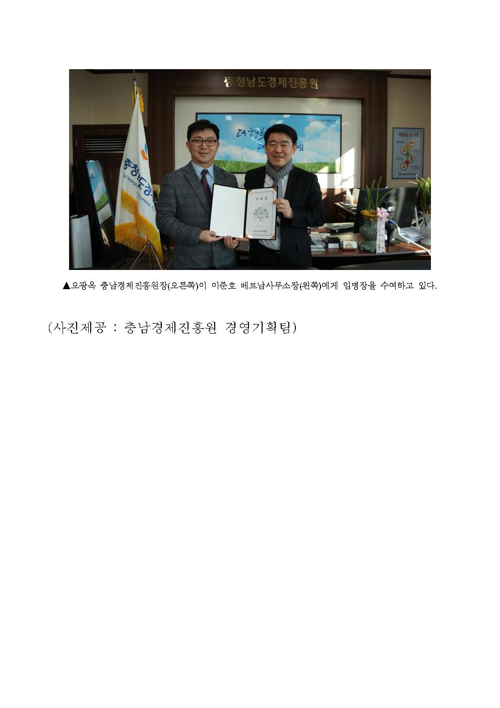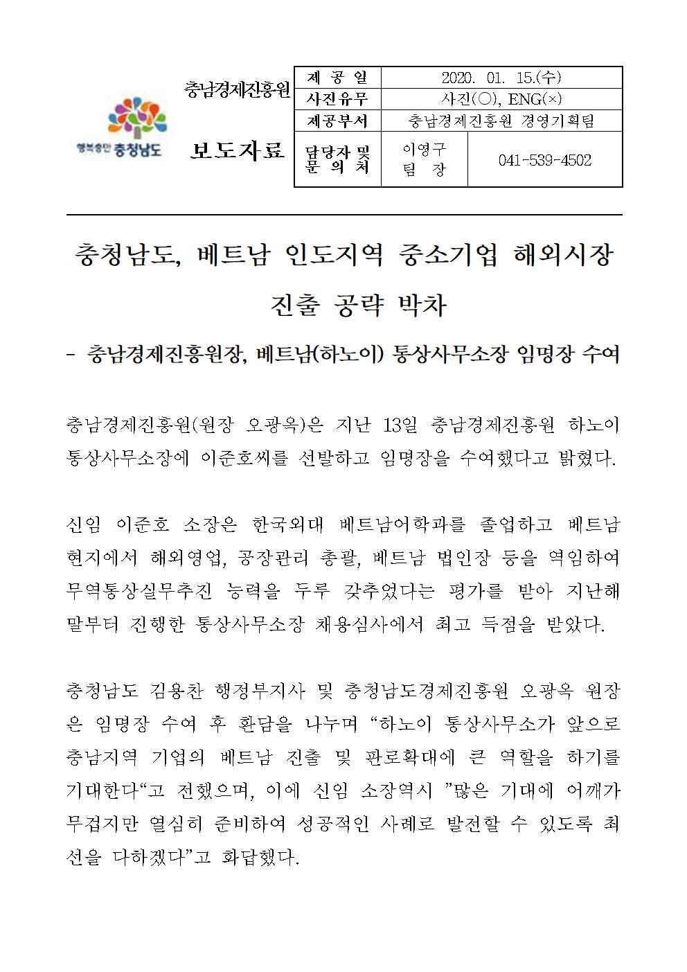 | 충남경제진흥원, 베트남 통상사무소장 임용 [2020.01.15] | |||