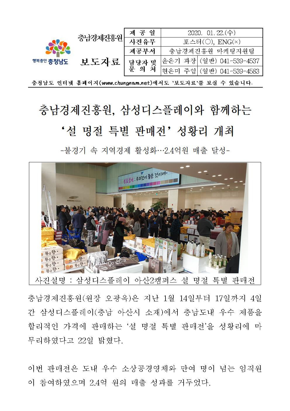 | 충남경제진흥원, 삼성디스플레이와 도내기업연계 판매전 개최 [2020.01.22] | |||